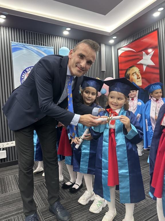 Öğrencilerin yıl boyunca geçirdikleri eğlenceli ve öğretici anları yansıtan slayt gösterisi ise salonda duygu dolu anlar yaşattı. Gösterilerin ardından, mezuniyet belgeleri miniklere takdim edilerek bu özel gün taçlandırıldı. Tören, öğrenciler, öğretmenler ve protokol üyelerinin birlikte yer aldığı toplu fotoğraf çekimi ile sona erdi.